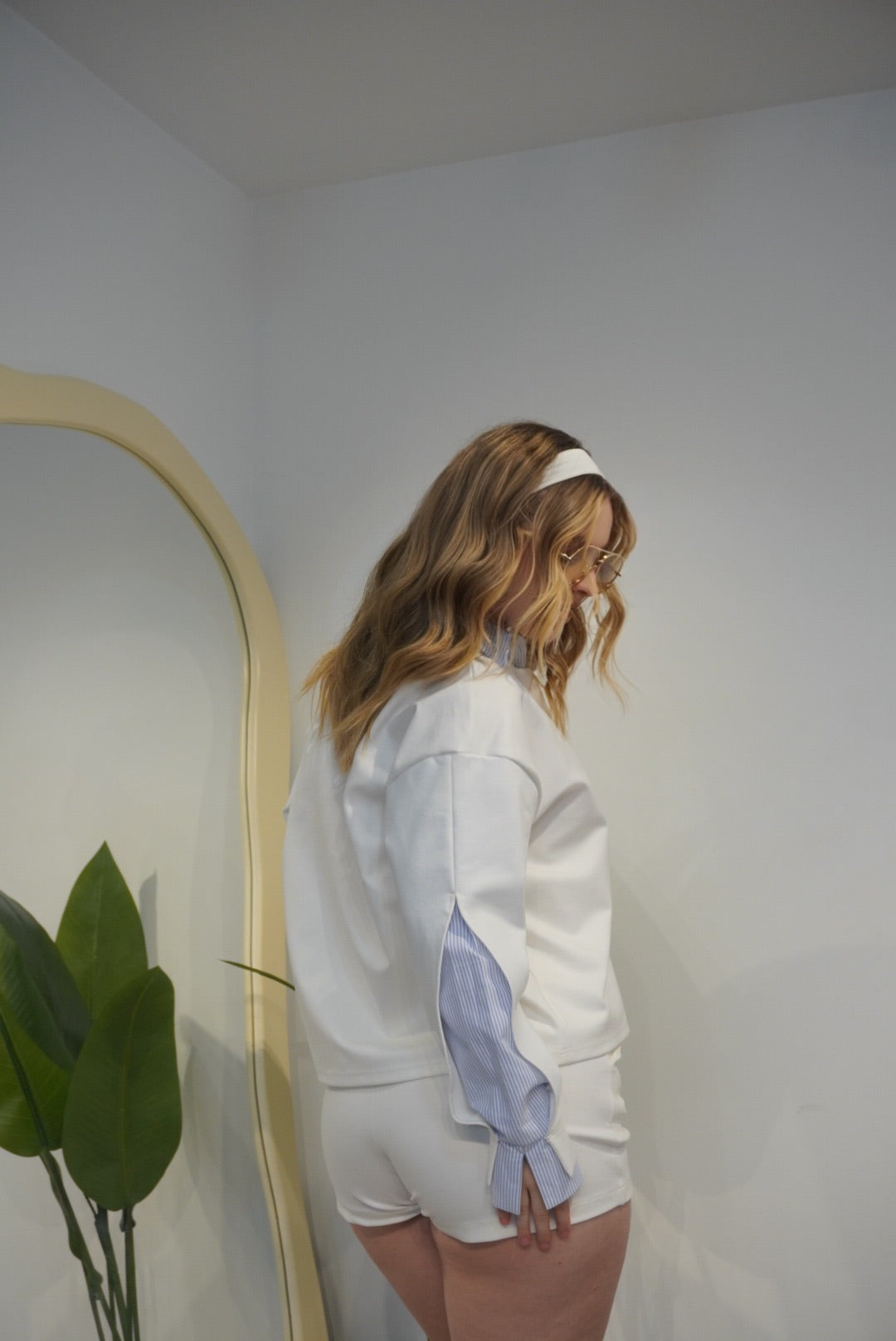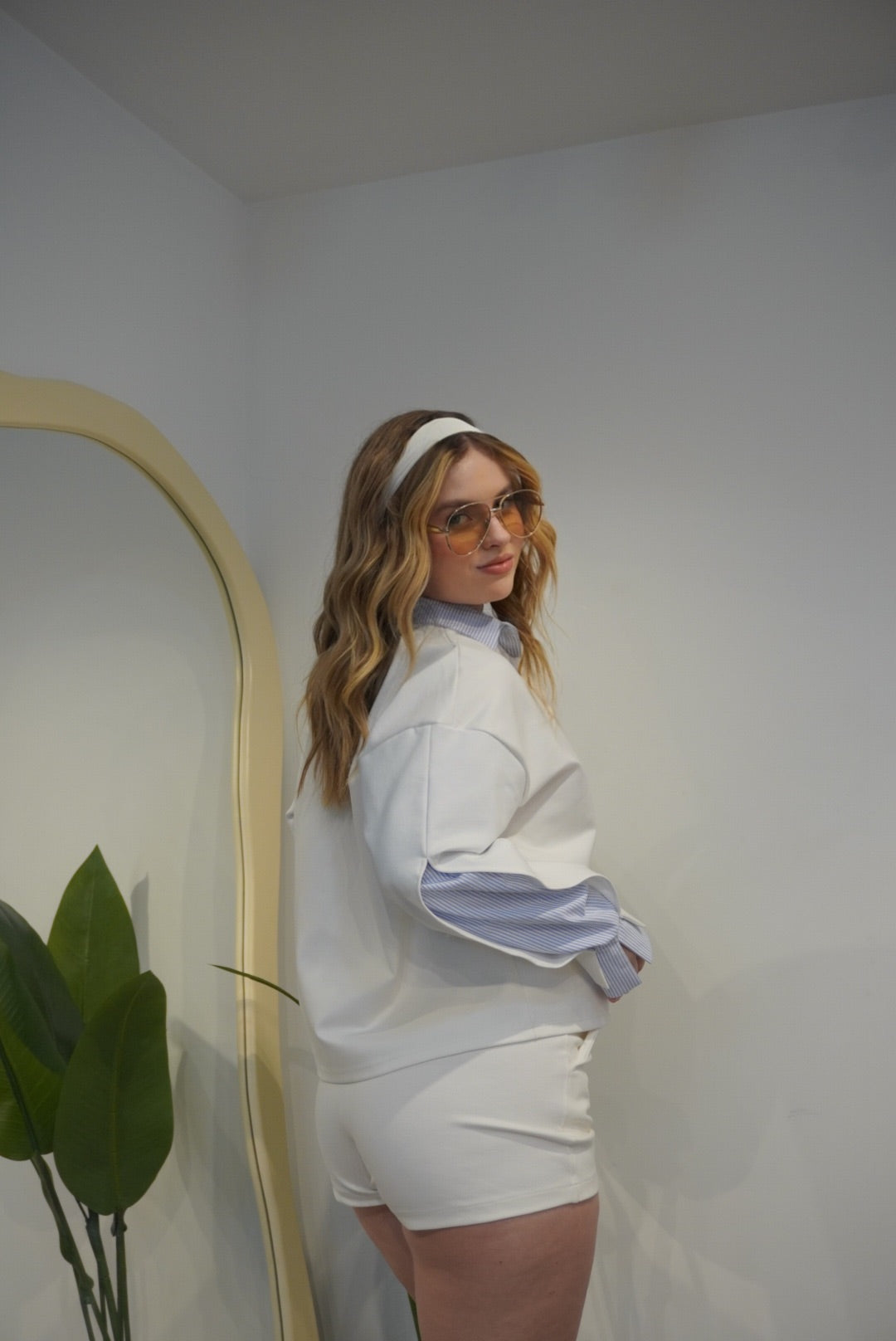 Amamos cómo el blanco se encuentra con el azul cielo en una combinación que se siente ligera, limpia y muy fresh.