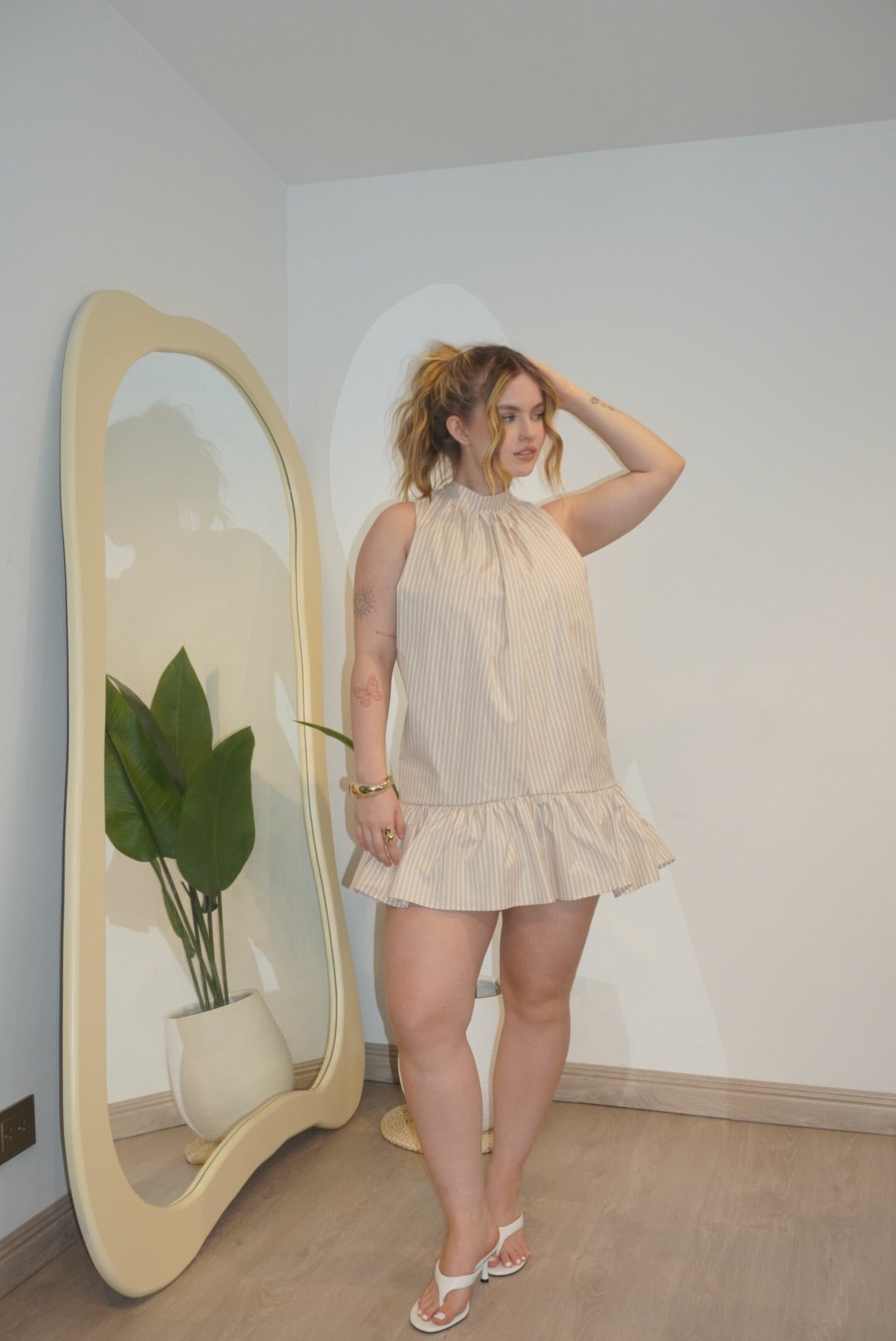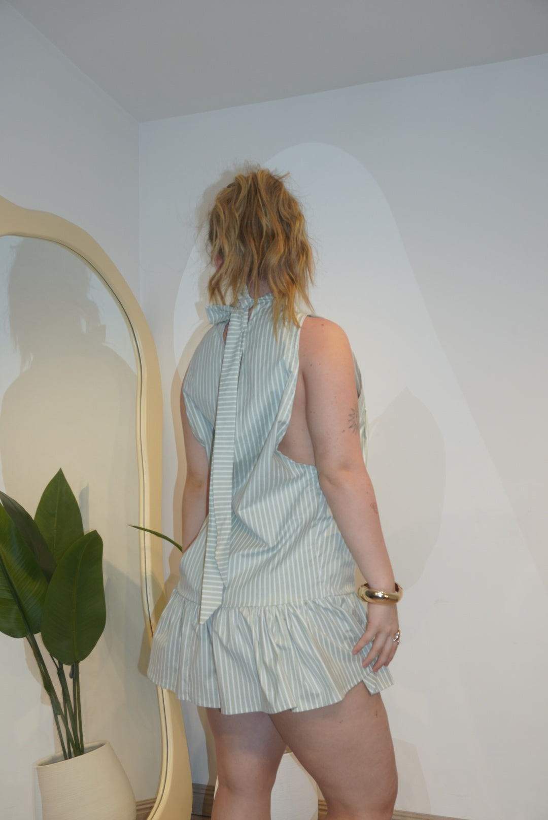 Detalles que enamoran desde el primer vistazo, Cuello fruncido con caída preciosa, lazo en la espalda que le da ese vibe romántico muy nosotros y sisas amplias para un look fresco y moderno. El vuelo en la parte baja mueve contigo y le da ese toque coqueto que amamos.